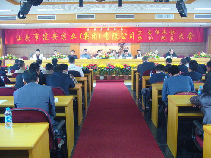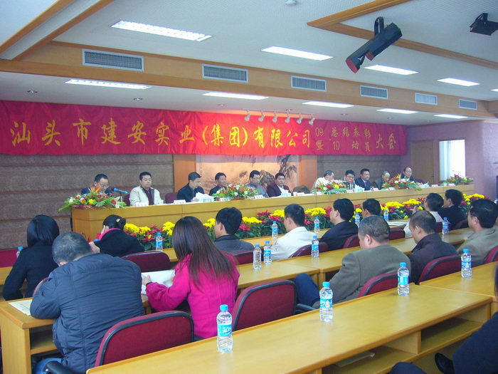 2月21日下午,汕头市建安实业(集团)有限公司在集团公司六楼多功能厅隆重召开2009年总结表彰暨2010年动员大会,集团公司领导、全体员工,各分公司、公司、工程处、项目部部分人员,我司幼儿园及文化活动中心全体人员近180人参加了会议。