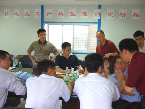 5月22日上午,广东省技术监督局下属的方圆标志认证集团有限公司委派的专家组一行四人对我司整合“三位一体”贯标体系进行了复审认证。今年我司的受检项目是刚开工不久的绿海名居工程。
