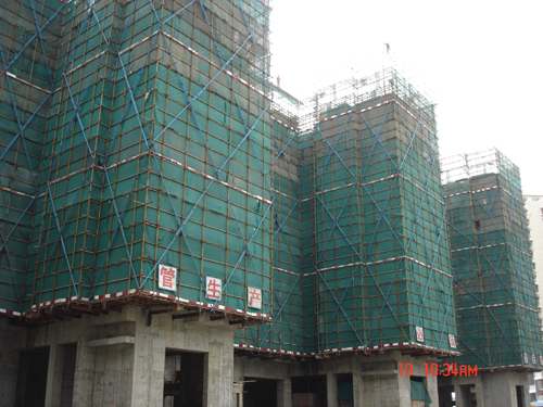 ◆ 绿海名居工程: 2A栋已完成十层墙柱及十一层梁板砼;2B和6栋已完成十一层墙柱及十二层梁板砼;1A、1B和1C栋已完成十二层墙柱及十三层梁板砼;2C栋已完成十三层墙柱及十四层梁板砼;4、5A和5B栋已完成十五层墙柱及十六层梁板砼;3栋已完成十六层墙柱及十七层梁板砼;幼儿园的基础承台已经完成。(☆ 绿海名居项目部 曾佳锐/图)