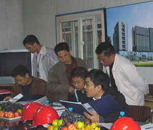 上图为专家组在项目部会议室检查资料