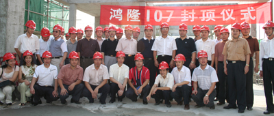 10月7日上午,107国道旁的鸿隆广场工地呈现出一派热闹喜庆的景象,由我司承建的鸿隆广场主体工程顺利封顶。我司在工程B栋顶楼举行了简短而热烈的封顶仪式,全司员工一同见证这一历史时刻,集团公司黄世豪董事长特地率领导团从汕头总部赶来,开发单位代表也应邀参加了仪式。