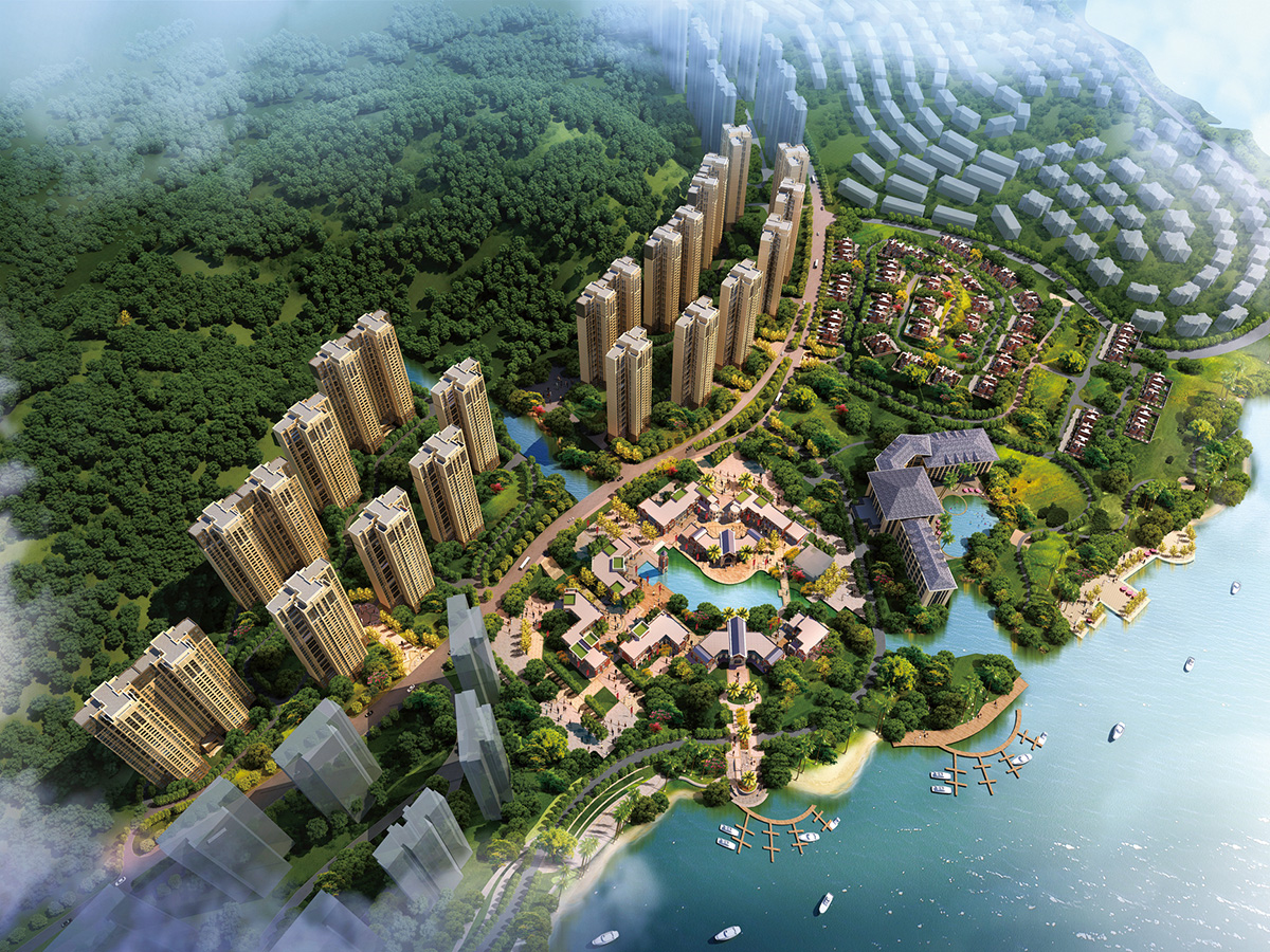 总建筑面积275000㎡(其中别墅100栋,高层住宅11栋,30-33层)。